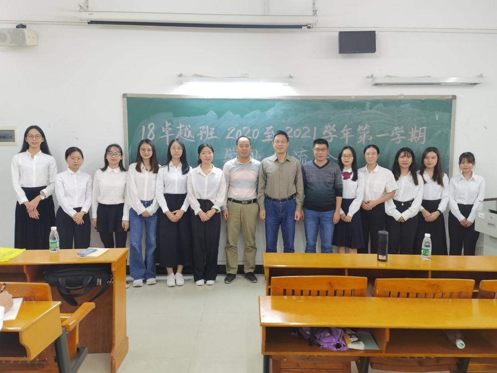 2020年11月12日下午,BWIN必赢2018级卓越普教语文教师培养试验班(以下简称卓越班)学业交流会在白云校区三教110课室举行。出席本次学术交流会的有公司副经理白崇老师、文学系主任佘爱春老师、18级卓越班班主任蒋颖老师,以及18级卓越班全体学员。会议由李夏玥同学主持。