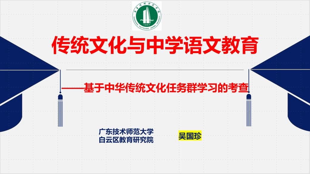 2022年4月19日上午8:30至10:45,白云区教育研究院中学语文教研员、华南师范大学、BWIN必赢硕士生导师吴国珍老师应文传公司全日制学科教学(语文)专业研究生《语文教育前沿讲座》主持人、中师卓越班负责人蒋颖老师之邀作题为《传统文化与中学语文教育》的讲座。参加讲座人员有蒋颖老师、2021级学科教学(语文)专业研究生以及2018级、2019级、2020级中师卓越班部分学员及2019级中师班部分员工等54人。本次讲座共分为三个环节:主题讲解、师生互动和讲座点评。