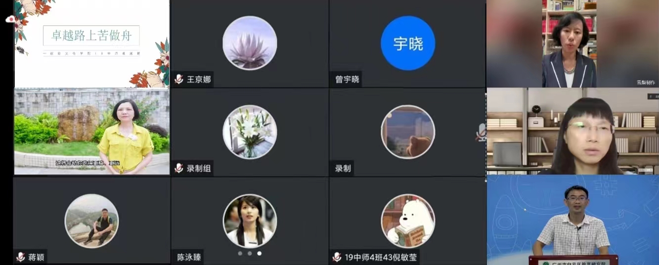 本次活动还邀请了来自校外的多位嘉宾以腾讯会议形式入会,这些嘉宾是:黄埔区荔园小学刘玲萍董事长,广东机械技师公司冯熙主任、王京娜副主任、曾宇晓老师,黄埔区教育研究院实验小学张俊生主任、黄埔区下沙小学冯谢玲老师、白云教育研究院吴国珍老师。