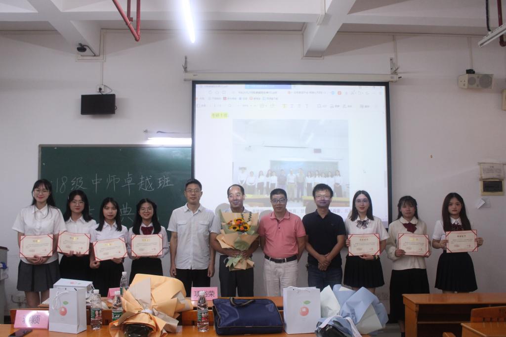 在颁发结业证书环节,老师们给18级卓越班全体同学颁发了结业证书,祝贺他们顺利毕业。紧接着的还有全体师生合影环节,全体与会师生一同移步三教楼前进行合影留念。