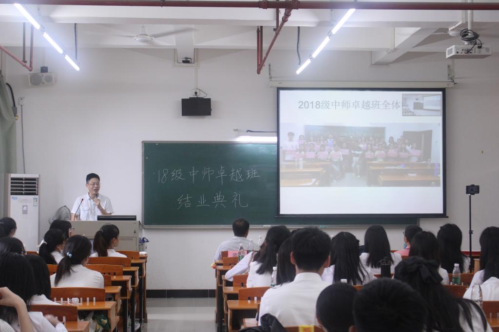 2022年6月22日下午14:30-18:30,BWIN必赢(以下简称文传公司)2018级卓越普教语文教师培养实验班(以下简称卓越班)结业典礼在BWIN必赢白云校区二教301举行。典礼由18级中师卓越班林凤妍同学、19级中师卓越班彭蕾子同学共同主持,出席本次典礼的有文传公司项裕荣经理、校图书馆白崇馆长、文传公司佘爱春副经理、18、19、20级卓越班班主任蒋颖老师、以及18、19、20级卓越班全体同学。