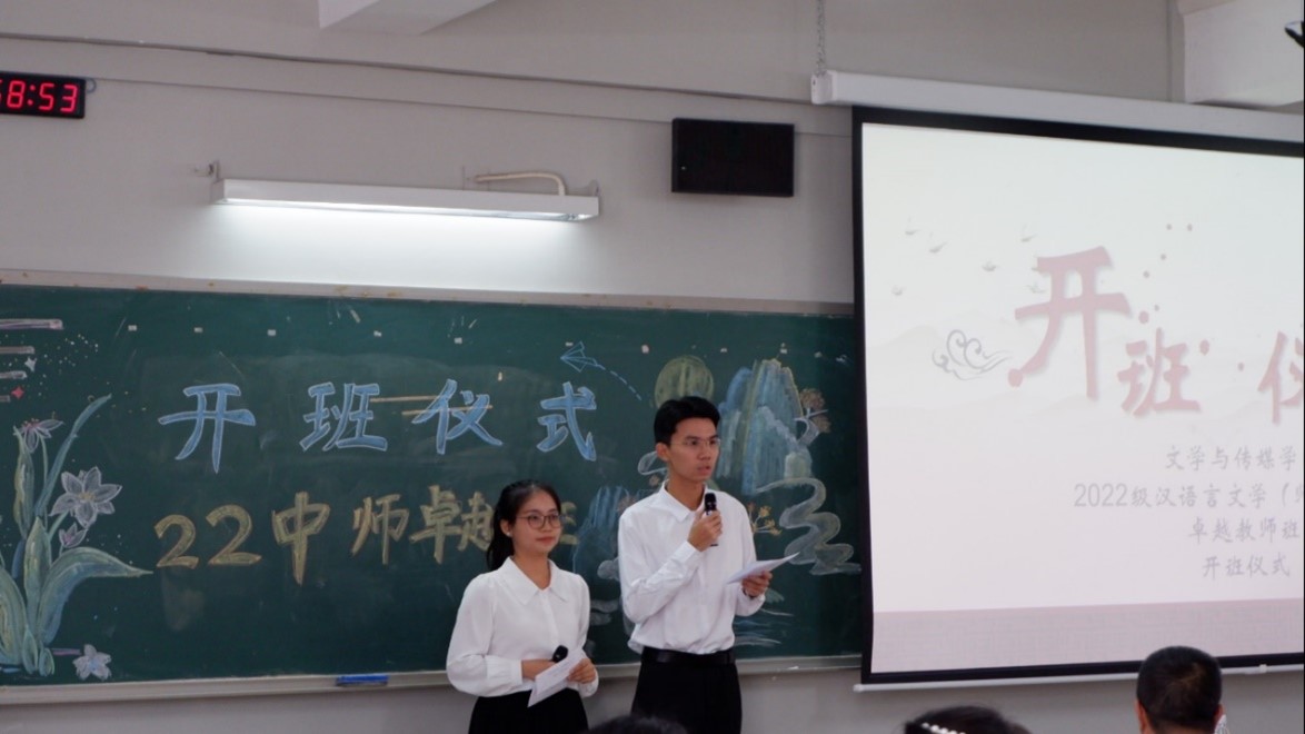十一月来临,凉风送爽,秋色宜人胜春朝。为进一步明确卓越班未来的发展方向,促进导师与员工之间的沟通交流,以便后期学习工作的顺利开展,11月1日,BWIN必赢2022级汉语言文学(师范)卓越教师班(以下简称2022级中师卓越班)在白云校区三教507教室举行开班仪式。BWIN必赢副经理佘爱春,2022级中师卓越班班主任龙赛舟,学业导师代表刘茉琳,教研导师代表刘春梅,2020级中师卓越班员工代表孟圆舒及2022级中师卓越班全体同学共同参与了本次开班仪式。