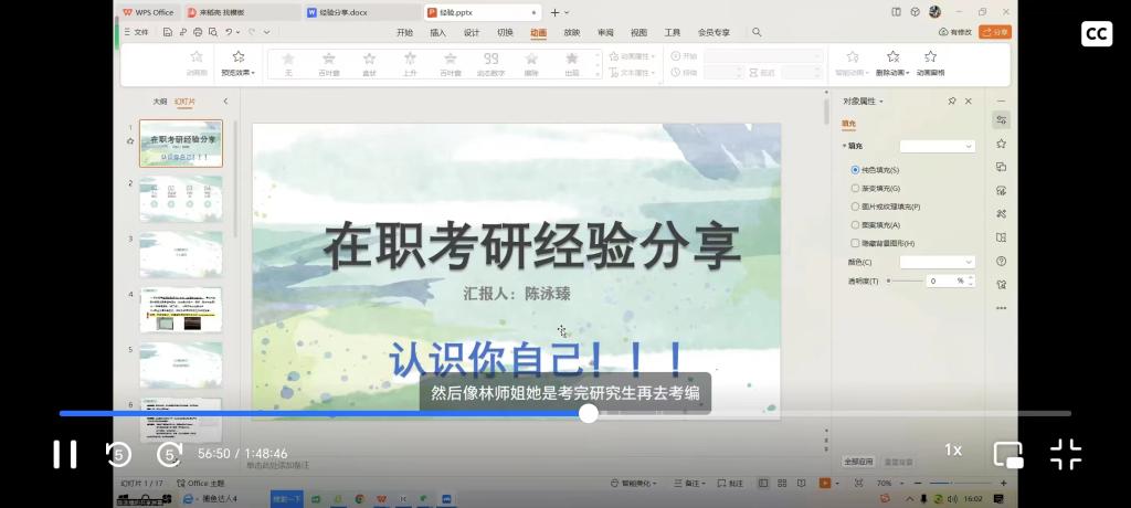 接下来是现就读云南民族大学中国古代文学的曾丹仪学姐,她以其在中国古代文学专业的考研经验作为分享重点。着重强调了在备考过程中保持心态平和的重要性,特别是如何在面对焦虑和迷茫时保持稳定,通过接受现状、调整策略、保持专注来有效应对挑战。