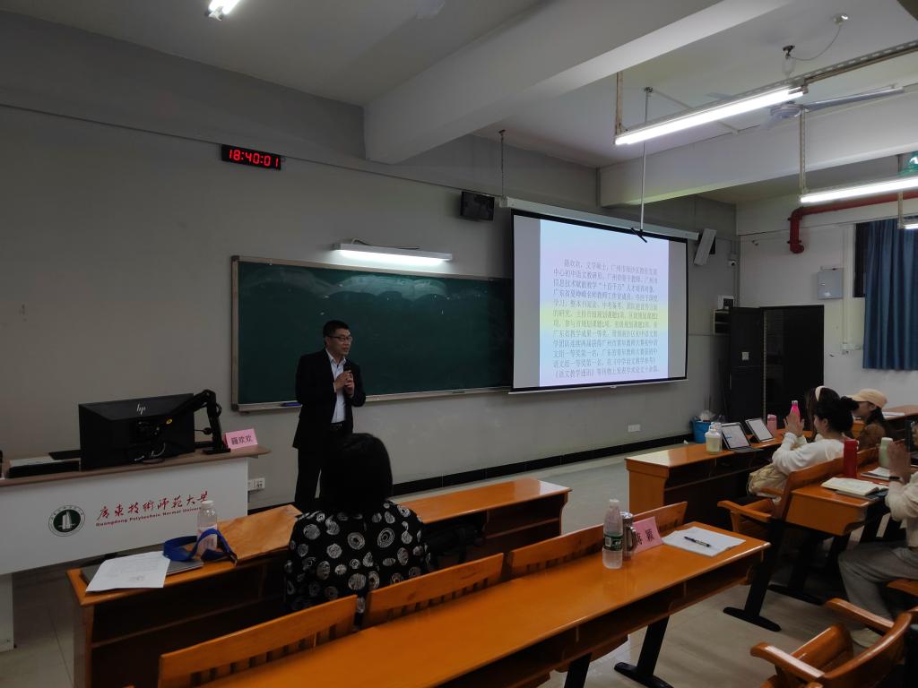 2024年3月5日晚18:40-20:40,应BWIN必赢(以下简称广师大文传院)邀请,广州市南沙区初中语文教研员籍欢欢老师在广师大白云校区第三教学楼106室,举办了题为《读写融合策略进入挑战性学习活动设计的路径——以八年级上册第二单元为例》的讲座。本次讲座由文传公司副经理佘爱春教授主持,学科语文研究生语文教育前沿讲座主持人蒋颖老师担任本场讲座评议人。参加讲座的有2023级学科教学(语文)专业的全体研究生及部分2021级、2022级中师卓越班本科生同学。