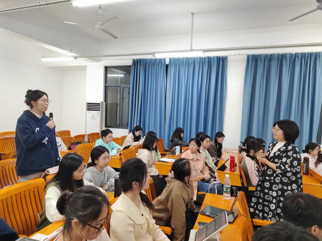 在互动交流环节,同学们积极发言,并提出了如“教师如何修改员工完成的任务设计”、 “小组合作中如何让员工充分发挥特长”、“如何提高员工学习语文的积极性”等问题。籍欢欢老师主动走到同学们身边,对于同学们提出的问题进行详细解答。