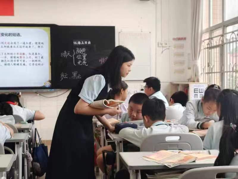 上午10时35分,蒋颖老师到实小进行教育实习交流活。实习生黎幸桐在实小四年级(2)班上了《海上日出》汇报课。实小吕燕娜董事长、陈妙婷主任、语文科组张佳宁组长、各位实习生指导教师以及蒋老师及未上课的实习生均到场听取汇报课。黎老师的整节课内容充实、目标明确、艺术气息浓厚,取得了不错的成效。