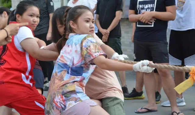 接下来是花式拔河,由于双方队长在不知对手实力的情况下选派上场队员,花式拔河因此充满了不确定性的刺激。两局比赛下来,公司同学轻松战胜对手,小编偷偷地跑去问外国语公司体育部部长:“还有一局,拉不拉?”她坚定地看着我说:“外国语的女人绝不认输,拉!”外国语公司好样的!