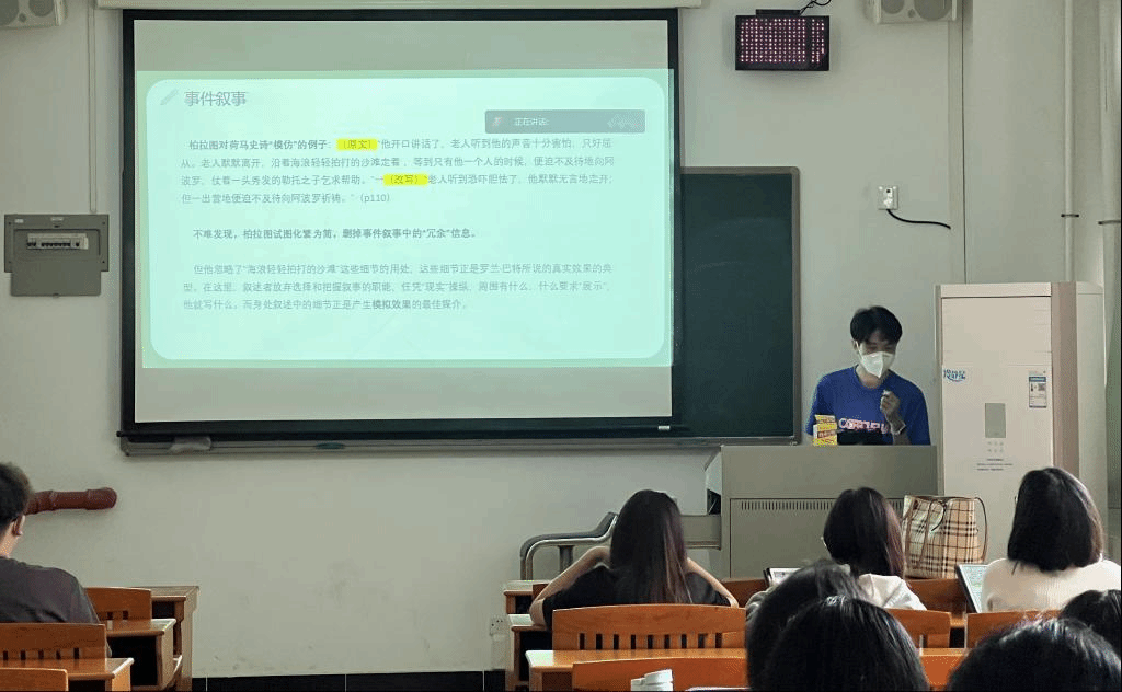 小组分享环节中,2022级新闻传播学研究生围绕《叙事话语》展开了积极探讨,分成6个读书小组,分章节对书中涉及的专业术语、概念以及核心要点进行分析和讲述,结合文学作品、电影作品等具体事例深入浅出地讲解书中的重点内容和内在逻辑,并提出自己的疑问和困惑。