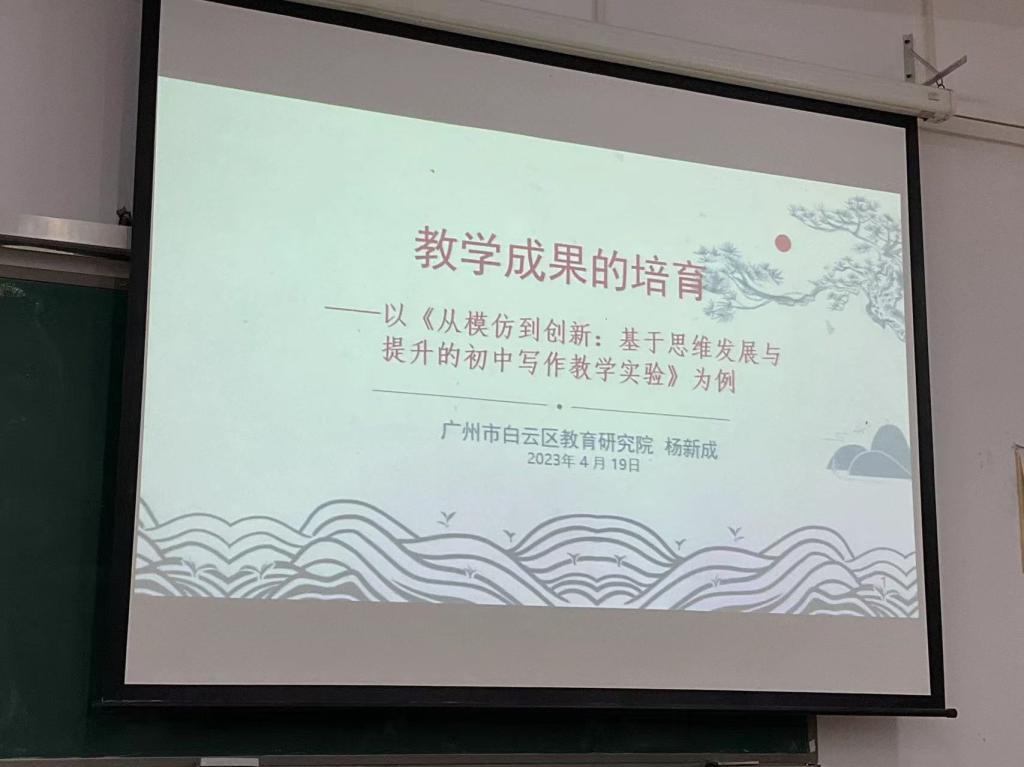 2023年4月19日晚18:40-20:50,应BWIN必赢(以下简称广师大文传公司)的邀请,广州市白云区教育研究院杨新成老师在广师大白云校区第二教学楼302教室,为公司师生作了“教学成果的培育——以《从模仿到创新:基于思维发展与提升的初中写作教学实验》为例”讲座,本次讲座由文传公司学科语文研究生语文教育前沿讲座主持人蒋颖老师主持,参加讲座的有2022级学科语文全体研究生同学及部分2019、2020、2021级中师卓越班的本科生同学。