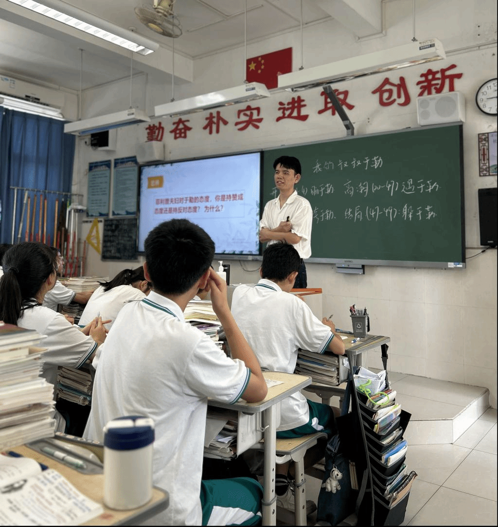首先,此次专题调研的第一环节是观摩实习生的汇报课。由实习生陈联琪在初二(5)班授课,主要是通过《我的叔叔于勒》来引导员工学会从多角度分析人物形象。