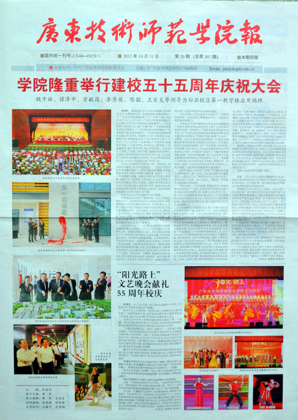 【广东技术师范公司报】公司隆重举行建校五十五周年庆祝大会--郑莹鹏