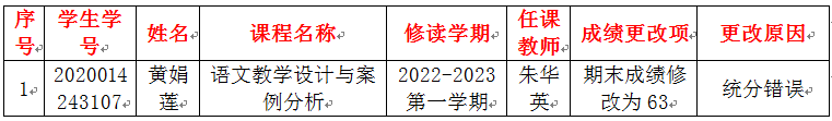 附文传公司2022-2023第二学期提出更改课程成绩汇总表: