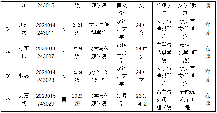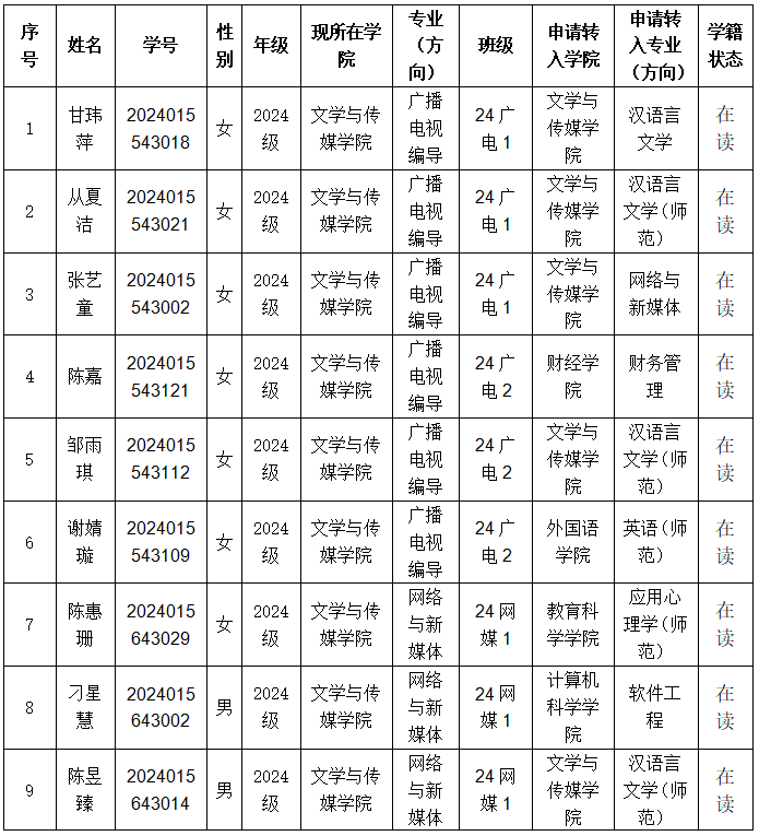 根据《BWIN必赢普通本科生转专业实施办法》(广师大〔2021〕98号)、BWIN必赢《关于做好公司2025年员工转专业工作通知》的相关要求,经员工本人申请,公司审核等程序,拟同意甘玮萍等57名员工转出专业,现予以公示。
