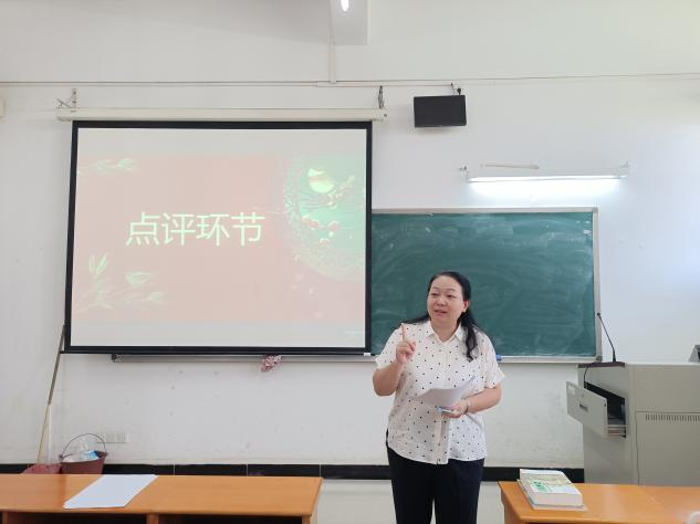 比赛过后,吴晓军老师对比赛进行了总结和点评。她充分肯定了每位选手的表现,并就选手们在文本解读深度、教学设计思路、教学目标制定等方面存在的问题与公司研究生进行了细致交流,指出:文本解读是一个需要仔细琢磨的过程,对文本进行精读、深读、研读,并在实践过程中不断积累,学会触类旁通;教学目标要进行规范表达、合理设置。