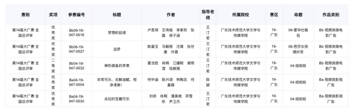 第十四届大广赛国奖名单