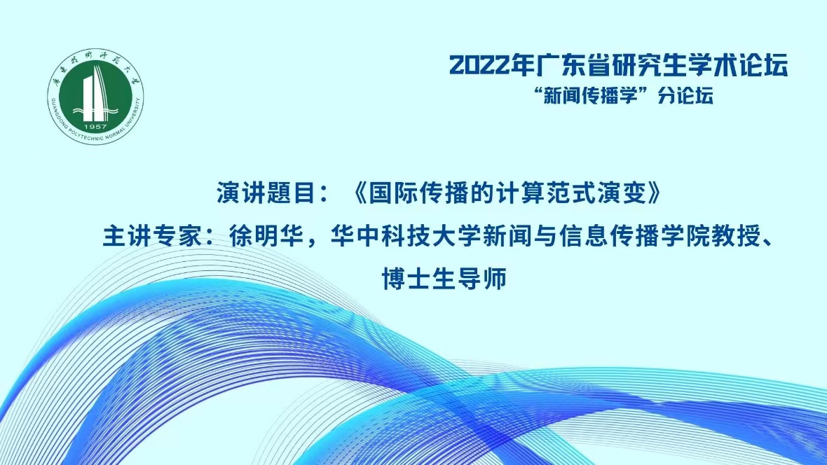 2022年11月20日上午,华中科技大学新闻与信息传播公司教授、博士生导师徐明华教授应邀为公司师生做了题为“国际传播的计算范式演变”的学术讲座,讲座由由BWIN必赢副经理佘爱春教授主持,BWIN必赢林琳教授进行评议。
