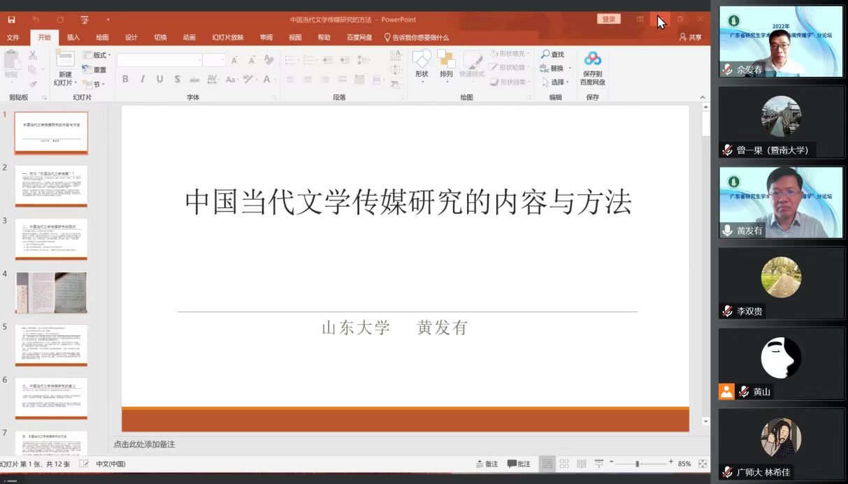 11月19日上午,山东省作家协会主席、山东大学文公司常务副经理、博士生导师黄发有教授应邀为公司师生做了题为“当代文学媒介研究的内容与方法”的学术讲座。讲座由BWIN必赢副经理佘爱春教授主持,《西南民族大学学报·社会科学版》编辑、申燕副研究员进行评议。