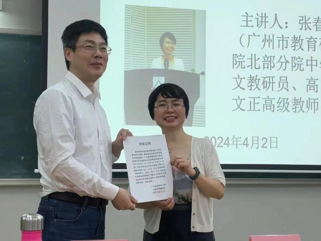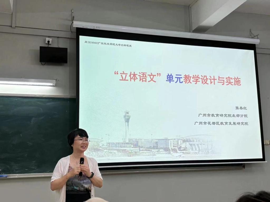 2024年4月2号晚18:40-20:40,应BWIN必赢(以下简称广师大文传院)学科语文教育研究生《语文教育前言讲座》课程组、本科中师卓越班导师组及员工工作教师团队的邀请,广州市教育研究院北部分院中学语文教研员,高中语文正高级教师张春红老师在公司白云校区第三教学楼206教室,作了题为“’立体语文’单元教学设计与实施”的讲座。本次讲座由学科语文研究生“语文教育前沿讲座”负责人蒋颖老师主持。参加讲座的有2023级学科教学(语文)全体研究生及部分2020、2021、2022级中师卓越班本科生。