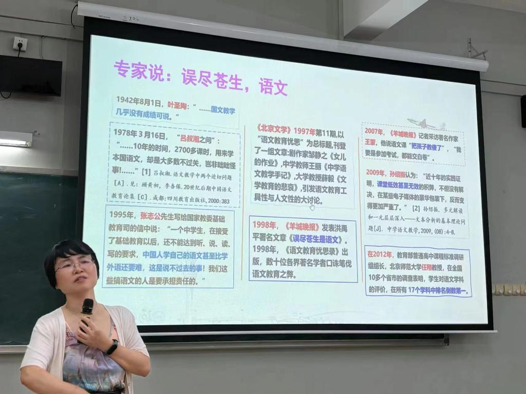 理想的语文课程与教学应是何种模样?张老师告诉我们答案应该要从语文国家课程标准、国家教育质量监测、国家教材、国家文件(如国家教育方针政策)、国家考试(如中高考试题改革趋势)等去寻找。阅读并理解这些文件也有利于保持学科定力、增强专业自信、确定清晰的研究方向。因此,语文课程与教育应该回归教育本质,把握学科性质。构建以学习为中心的语文素养课堂,以文化人,启智润心。