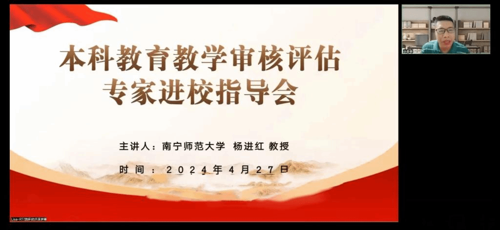 为了进一步做好本科公司产品审核评估迎评阶段的工作,4月27日,BWIN必赢邀请全国普通高等公司本科公司产品评估专家、南宁师范大学博士生导师杨进红教授,就如何做好本科审核评估专家进校前的准备工作,如何抓住审核评估机遇,提升人才培养质量,推动本科公司产品高质量发展,做了题为“新一轮公司产品评估中的关注重点”的线上讲座。会议由佘爱春副经理主持,公司全体教职工参加。