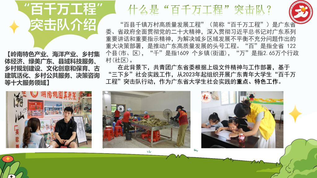 为扎实推进公司老员工暑期社会实践工作,让公司同学全面认识社会实践意义,提前做好充分准备,在乡村广袤天地中展现青春风采。BWIN必赢团委青年志愿者协会于2025年6月20日上午10:00,在河源校区大讲堂102及白云校区线上腾讯会议同步举办“志汇乡村,情暖盛夏”暑期“三下乡”社会实践活动暨“百千万工程”突击队行动宣讲培训会。