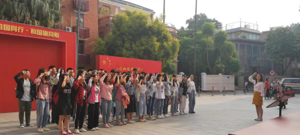 首先,王思民老师带领员工党员们在三大会址的广场前们进行宣誓。紧握有力右拳、铿锵有力的誓言,展现了党员同学的矢志不渝的入党初心和为共产主义奋斗终身的决心。