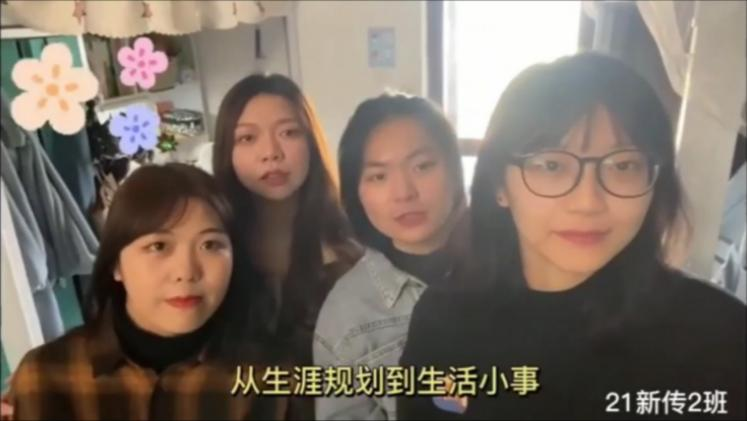 来自21新传2班宿舍代表向帮扶师姐道以真诚的感谢,感谢她从生涯规划到生活小事的指点与解答,感谢她提出的建议。同时,她们以真挚的祝福作为视频的结尾:愿师姐学业有成,平安喜乐,所念皆所得。感激之情难以言表,但用心制作的视频却能传情答意。