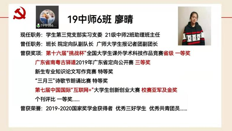 随后,19中师6班廖晴同志作为此次帮扶人员代表发表了讲话。廖晴同志围绕宽容、教训、后悔三个关键词, 分享了自己在帮扶过程中的心得体会。并希望大家能学会宽容他人,谅解他人,谨记教训纠正自己,勇敢主动地行动起来。最后,她呼吁大家继续向身边的青年党员榜样学习,在自己的岗位上尽心尽力、发光发热。