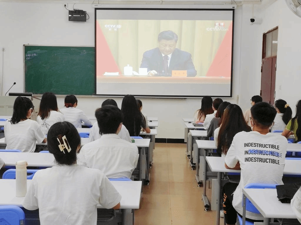上午十时,公司党政班子成员和辅导员们准时观看学习直播内容。此外,公司还组织党员、入党积极分子和团员代表于白云校区一教108观看现场直播,员工干部、各班班长与团支书分别在白云校区三教206与河源校区唯实楼111观看回放,深刻学习领会了习近平总书记的发言讲话精神。