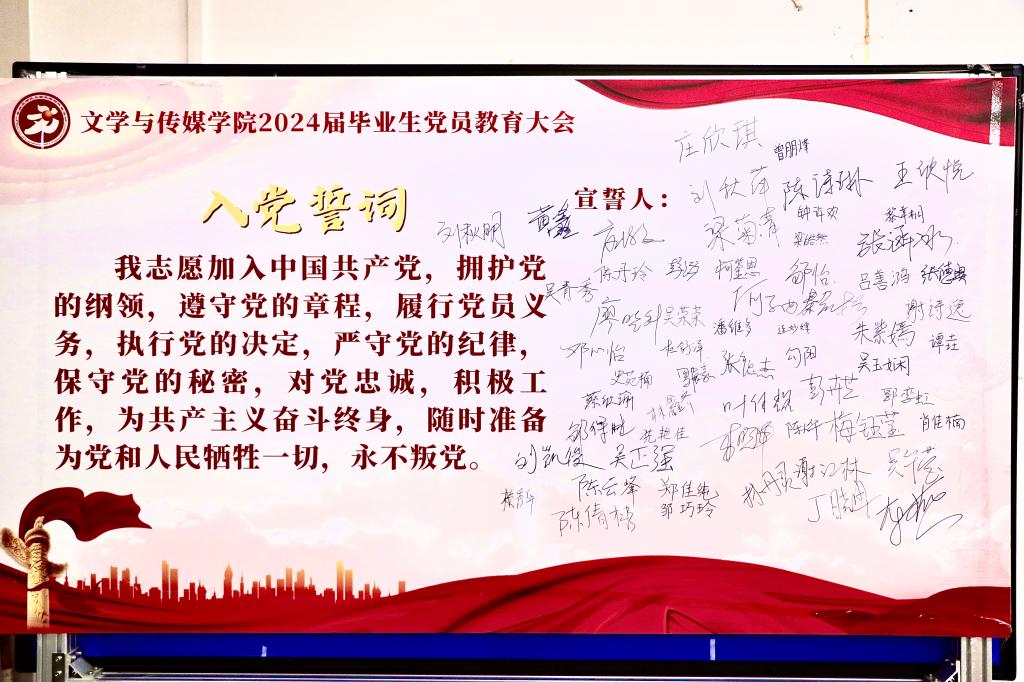 会议伊始,全体毕业生党员重温了入党誓词。一句句铿锵有力、掷地有声的誓词让毕业生党员进一步坚定理想信念,明确党员的使命担当。