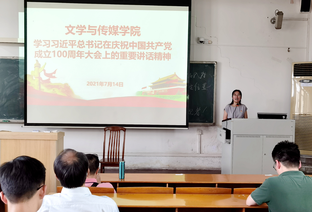 公司中国文学系系主任刘茉琳老师、辅导员林庆老师分别就学习习近平总书记在庆祝中国共产党成立100周年大会上重要讲话精神心得进行了分享。两位老师从改革发展、脱贫攻坚、抗击疫情等方面充分肯定了中国特色社会主义道路是实现民族复兴之路、国家富强之路、人民幸福之路,只有坚持中国共产党领导才能实现中华民族伟大复兴。