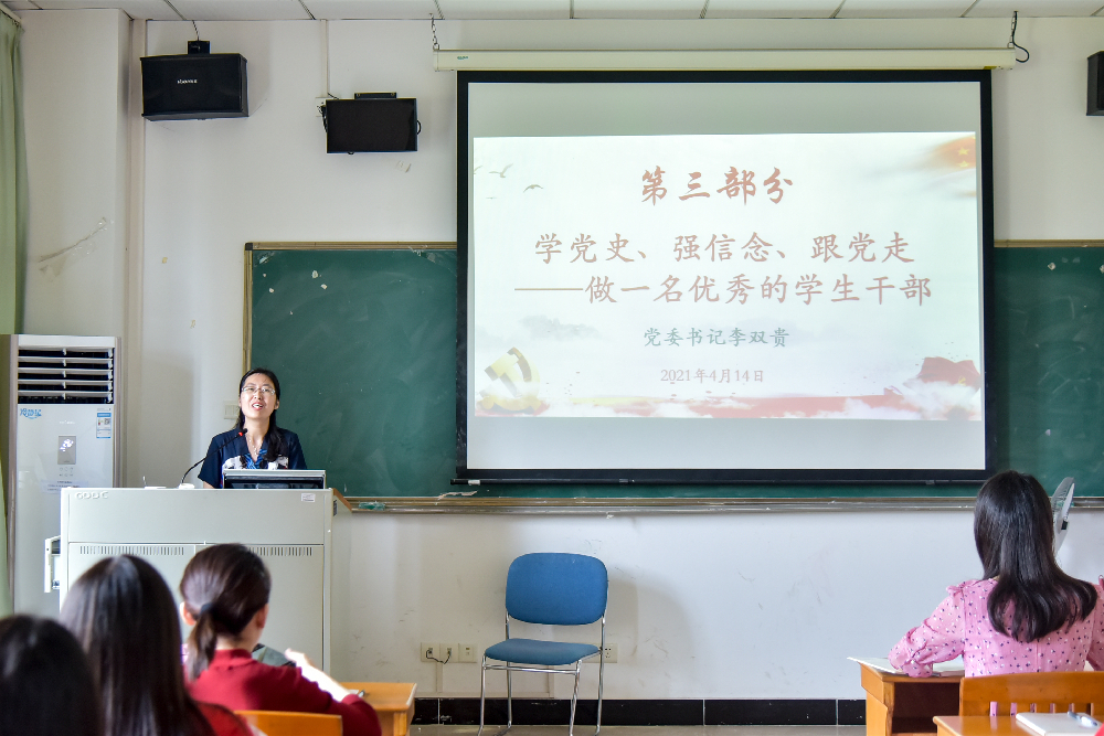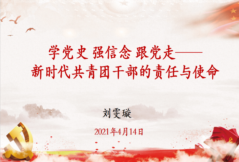 首先,公司辅导员刘雯璇老师以主题《学党史强信念跟党走——新时代共青团干部的责任与使命》讲授专题团课。她以《觉醒年代》中六点“敬告青年”的要求作为切入点,结合公司实际,从模范带头、工作积极性、联系师生、关心时政、扎实学习、遵守章法等方面对团学干部提出了具体的要求。